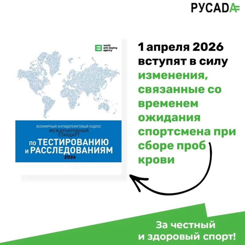 Напоминание: обновленный Международный стандарт по тестированию и расследованиям 2026 года с изменениями, связанными со временем ожидания Спортсменами при сборе/сдаче проб крови, вступает в силу 1 апреля .