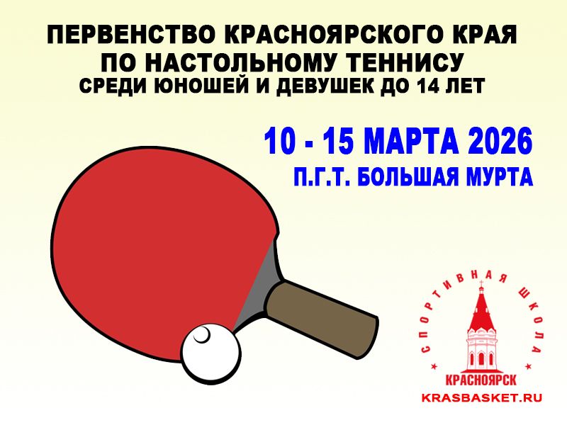 Во вторник, 10 марта 2026 года, в посёлке городского типа Большая Мурта стартует первенство Красноярского края по настольному теннису среди юношей и девушек до 14 лет.