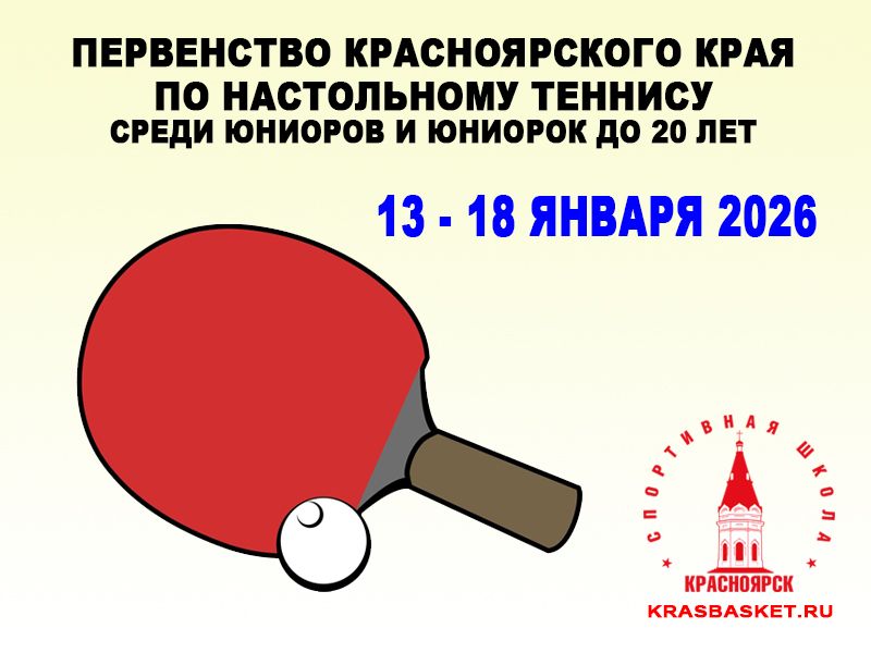 Во вторник, 13 января 2026 года, в городе Красноярске стартует первенство Красноярского края по настольному теннису среди юниоров и юниорок до 20 лет.