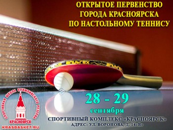28-29 сентября пройдёт первенство города Красноярска по настольному теннису