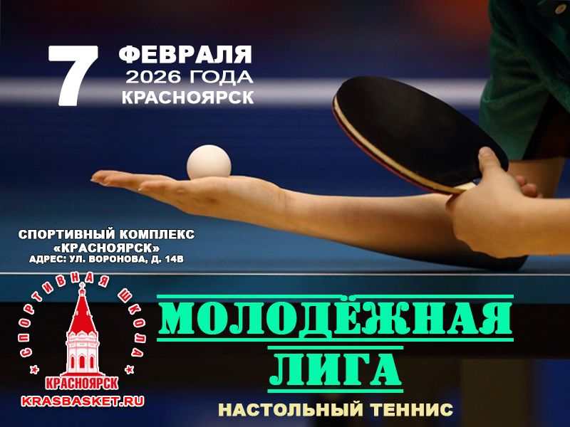 7 февраля 2026 года в городе Красноярске пройдут массовые соревнования по настольному теннису «Молодёжная лига».
