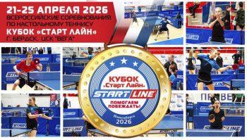 С 21 по 25 апреля 2026 года в городе Бердске Новосибирской области прошли игры Всероссийских соревнований по настольному теннису 14 Кубок «Старт Лайн» среди спортсменов возрастной категории «юноши и девушки до 14 лет» и «юниоры и юниорки до 20 лет».