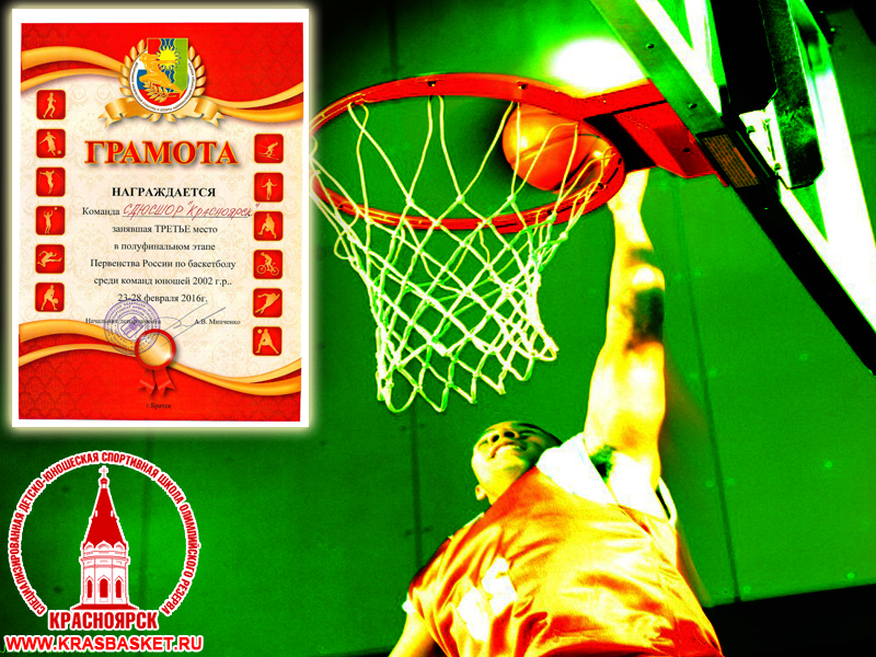 С 23 по 28 февраля 2016 года команда «СДЮСШОР «Красноярск» специализированной детско-юношеской спортивной школы олимпийского резерва «Красноярск» приняла участие в матчах полуфинального этапа Первенства России по баскетболу среди команд юношей 2002 года рождения.