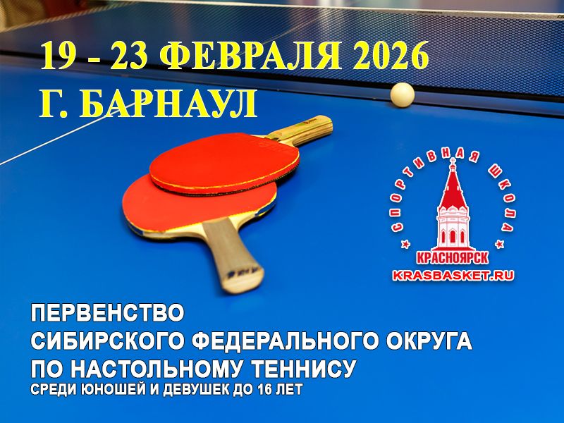 С 19 по 23 февраля 2026 года в городе Барнауле пройдёт первенство Сибирского федерального округа по настольному теннису среди юношей и девушек до 16 лет.